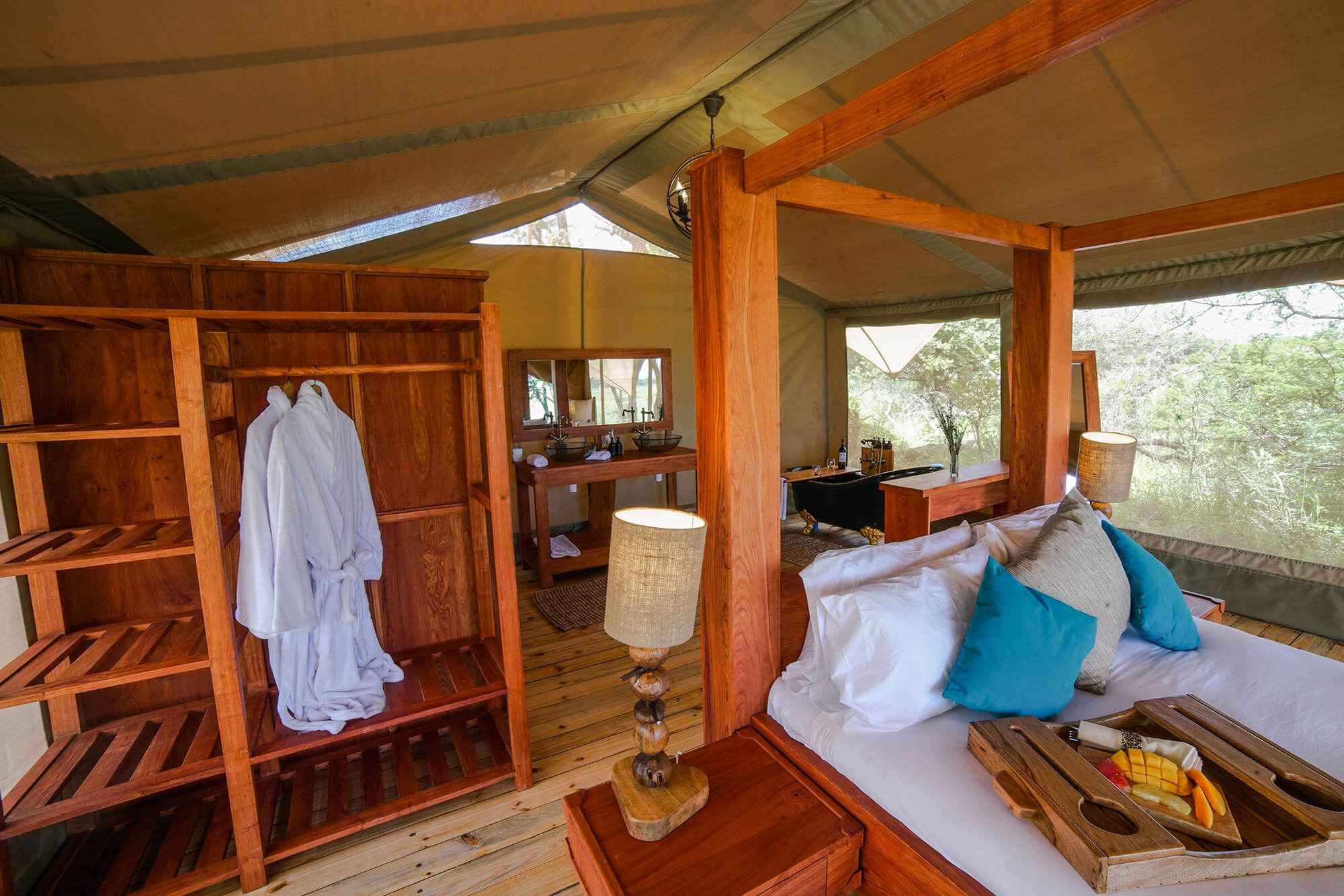 Asanja Grumeti Camp is an intimate, luxury tented camp located in the Western Corridor of Tanzania’s Serengeti National Park, near the Grumeti River. The camp features just three spacious, well appointed tents, each offering modern amenities and an en-suite bathroom with an outdoor shower. The camp’s exclusive nature ensures a personalized and secluded safari experience, perfect for those seeking a more private retreat.