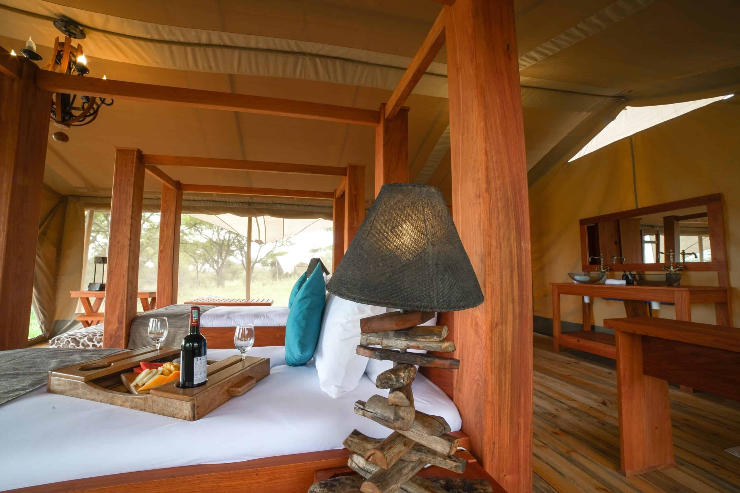 The location provides excellent wildlife viewing, especially during the Great Migration when wildebeest and zebras cross the Grumeti River. Guests can also enjoy sightings of resident lion prides, crocodiles, and hippos. The camp’s design blends modern comfort with the natural beauty of the Serengeti, providing a unique and luxurious way to immerse yourself in the wilderness.